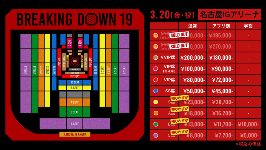 ※暴力団、暴力団員、暴力団関係企業、団体またはその関係者、その他反社会的勢力の属する方のご入場を固くお断りいたします。その他、来場にあたって注意事項はRULEの観戦ガイドをご確認ください。